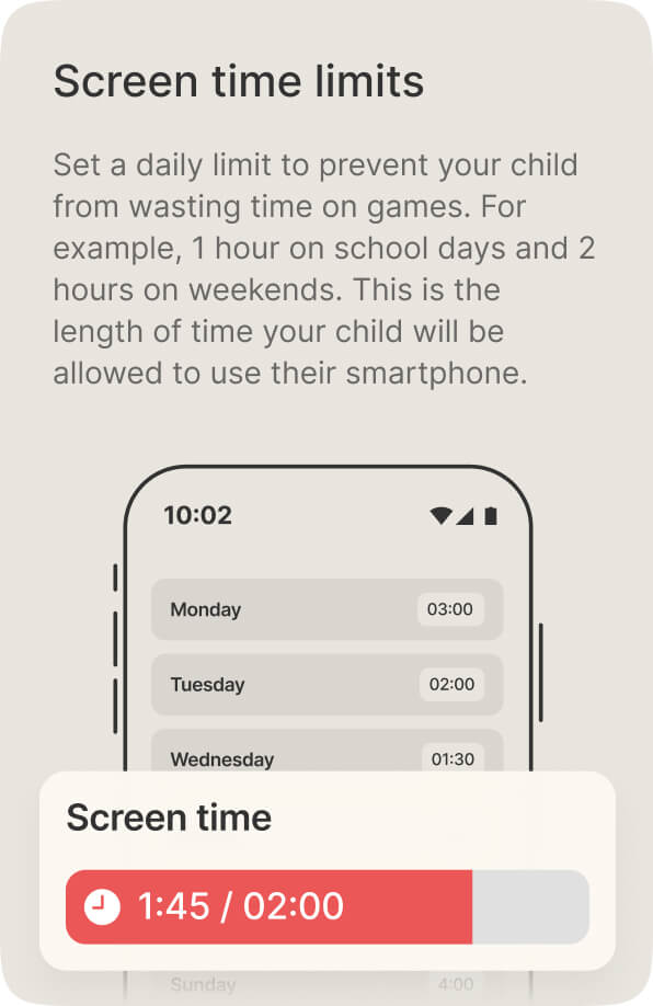 Try 7 days for free Try 7 days for freeParental controls will significantly reduce the time wasted playing games on a phone. Also, you can easily monitor which apps your kids are using.