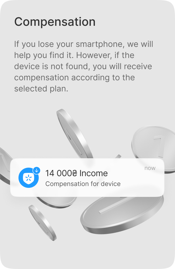If you lose your smartphone and cannot find it within 14 days, we will compensate your loss. The amount depends on the chosen plan.